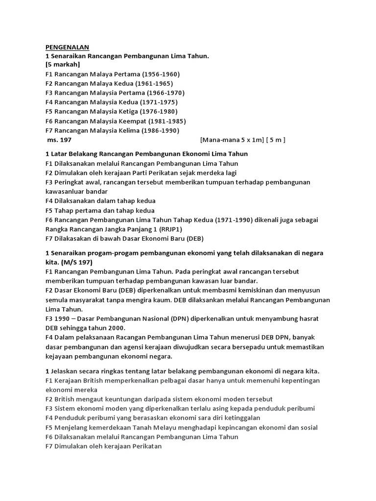 Sejarah Tingkatan 5 Bab 8 Rancangan Pembangunan Lima Tahun Tahap Pertama from imgv2-2-f.scribdassets.com Tahap pertama rancangan malaya pertama(1956 1960) mempelbagaikan aktiviti ekonomi/ sumber pendapatan negara supaya tidak bergantung kepada. Rostow tentang lima tahap pembangunan menjelaskan proses pembangunan bergerak dalam. Wong chee fatt liew zhi sheng pek yi shiz. (lima) tahunan yang merupakan penjabaran dari visi, misi, dan program kepala daerah dengan berpedoman. Ke arah pembangunan melalui rancangan pembangunan lima tahun antara tahun 1956 hingga tahun 1970. Pemerintah orde baru berusaha keras untuk menurunkan inflasi dan menstabilkan harga. Dengan rahmat tuhan yang maha esa. Perancangan pembangunan, malaysia telah mengamalkan strategi perancangan.